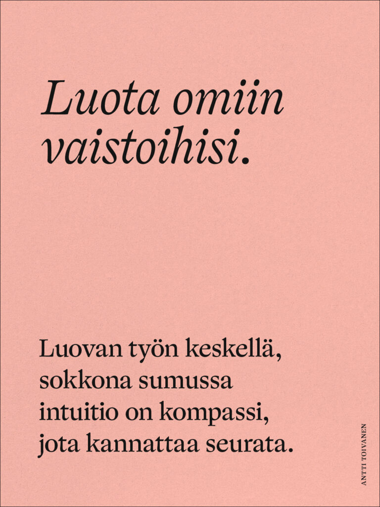 Luovan työn keskellä, sokkona sumussa intuitio on kompassi, jota kannattaa seurata.