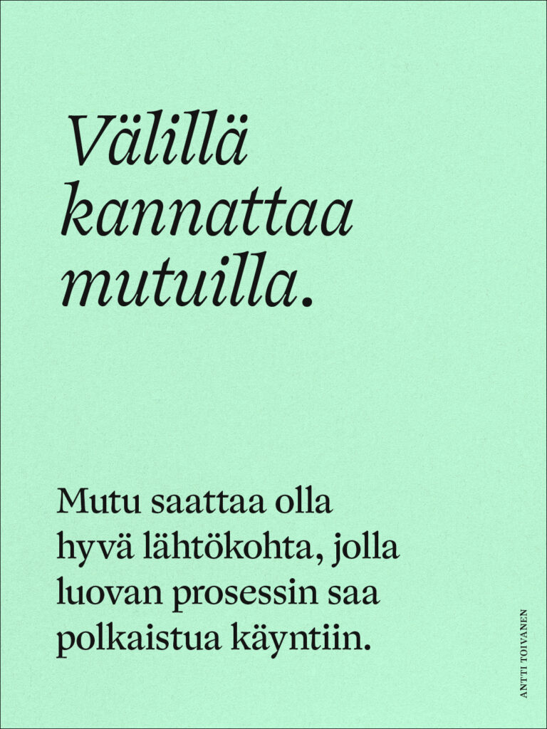 Mutu saattaa olla hyvä lähtökohta, jolla luovan prosessin saa polkaistua käyntiin.